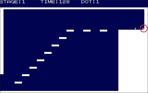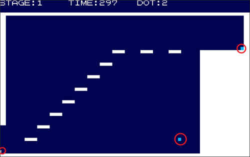 • 상단에 'STAGE / TIME / DOT(남은 점/목숨처럼 보이는 표시)'가 있어 제한과 반복 도전 구조