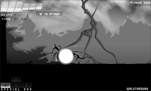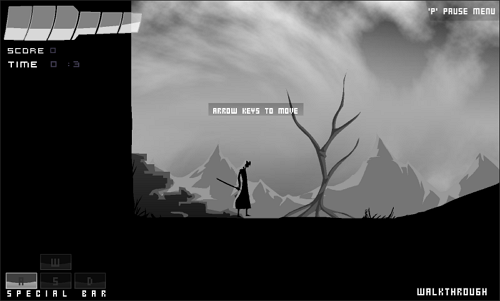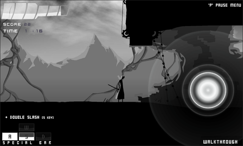 검을 든 실루엣 주인공을 조종해서 스테이지를 진행하며 등장하는 적들을 베어 쓰러뜨리고 보스까지 격파하는 방식입니다.