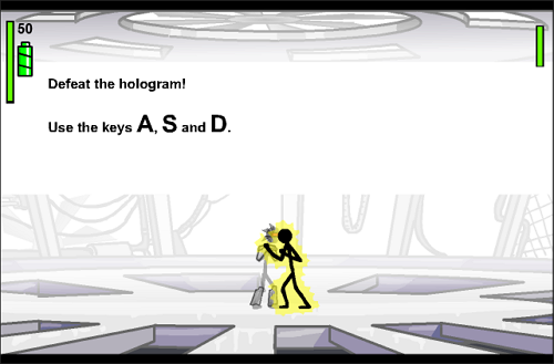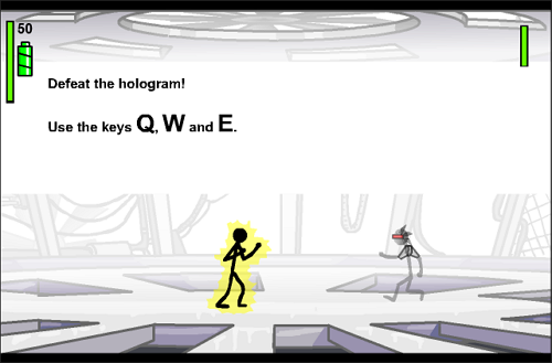 좌우 이동과 점프(방향키)를 사용해 스틱맨을 움직이고 A, S, D키와 Q, W, E키로 각각 다른 타입의 공격(보통 공격, 강공격, 슬로모션 전기공격 등)을 넣어 적을 쓰러뜨립니다.
