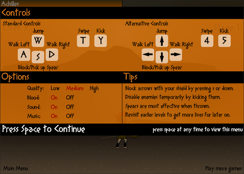 아킬레스는 그리스 신화 최고의 전사 아킬레우스가 되어 적군을 무찌르는 액션 격투 플래시게임입니다. Ben Olding이 2008년 제작한 게임으로, 검과 창, 방패로 무장한 전사를 조종하여 수많은 적들과 싸워야 합니다.