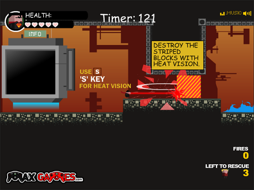실험실 사고로 방사능(?)에 노출돼 초능력을 얻게 된 “네모난 히어로”의 데뷔 스토리라서 제목에 ‘Origins’가 붙었고, 각 스테이지마다 화재가 난 건물에서 사람을 구출하는 게 목표입니다..