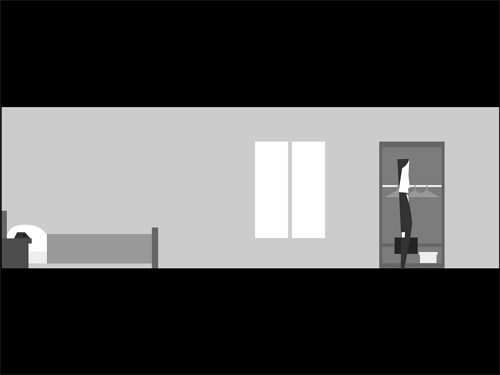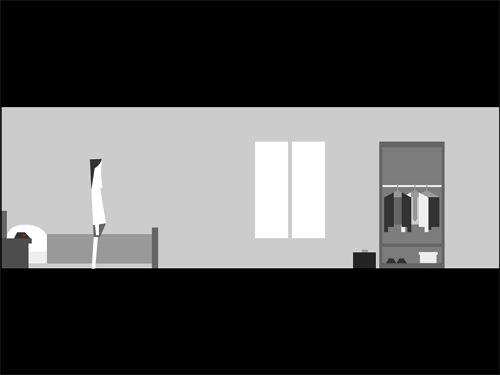 먼저 일어나서 알람이 울리는걸 스페이스로 닫고 옷장으로 갑니다.