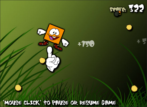마우스 커서를 좌우로 움직여 손가락을 기울이고, 상자가 떨어지지 않도록 계속 밸런스를 유지해야 합니다.
