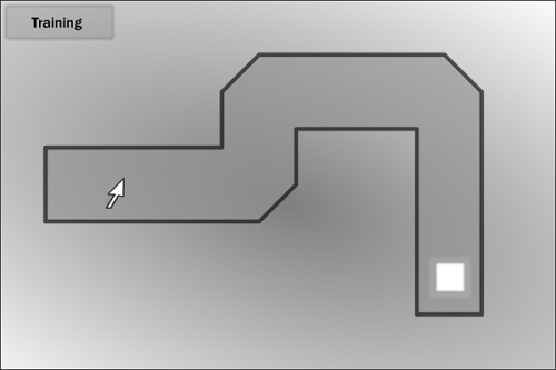 마우스 1.0은 화면 속 흰 원에 커서를 올리면 숨겨진 미로가 나타나고 통로 경계를 벗어나지 않고 흰 네모 목표 지점까지 커서를 이동시키는 마우스 조작 미로 탈출 게임입니다.
