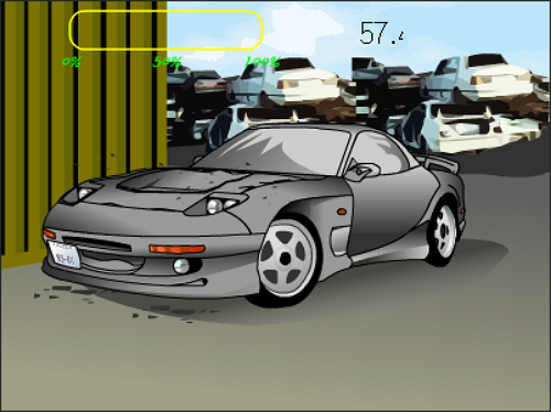 게임이 시작되면 폐차장에 멋진 자동차 한 대가 등장합니다. 제한 시간(57초 등) 내에 마우스로 자동차의 각 부분을 클릭해서 파괴합니다.