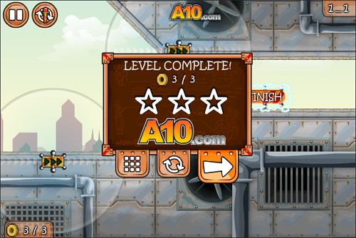 이동중 동그란 아이템을 모두 먹어야 별3개를 획득합니다.