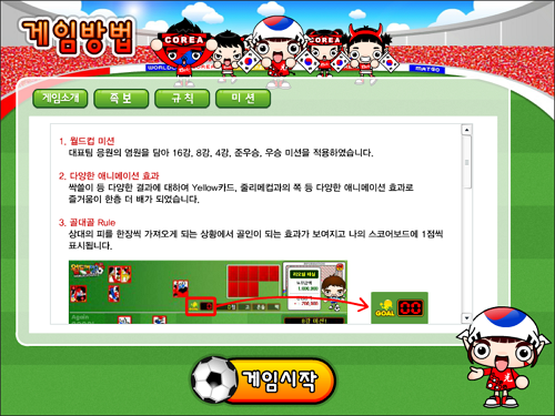 2010년 남아공 월드컵을 기념하여 제작되었으며, 축구장을 배경으로 귀여운 캐릭터들과 함께 맞고를 즐길 수 있습니다.