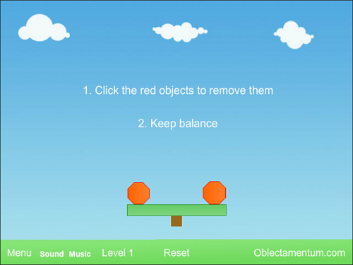 녹색 막대 위의 빨간 도형들을 하나씩 클릭해 제거하면서 균형을 유지해야 하는 에퀼리브리엄4는 단순한 조작 속에 물리 법칙을 활용한 전략적 사고가 요구되는 순발력 클릭게임입니다.
