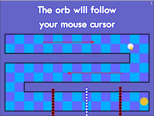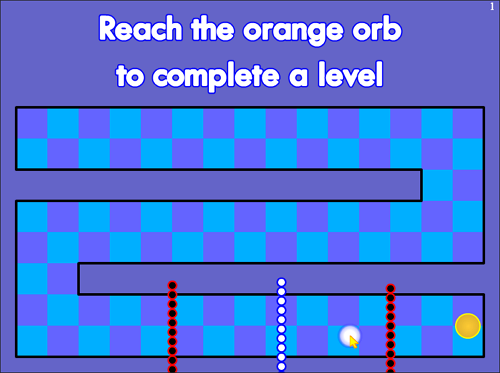 커서를 따라오는 구체(orb)를 움직여 미로를 통과하면서 색을 바꿔 같은 색 탄(장애물)을 통과/대응하며 목표 지점까지 가는 방식입니다.