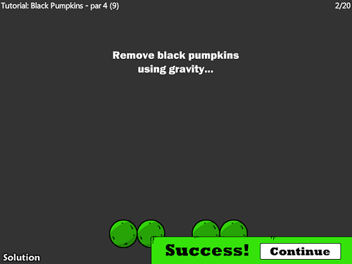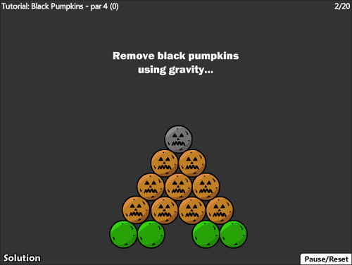마우스만 사용. 썩은 호박을 클릭해서 제거하고 검은 호박은 불/중력(떨어뜨리기)로 제거해서 화면의 호박을 전부 없애면 클리어 하는 게임으로 녹색의 호박은 없애는 것이 아닙니다.
