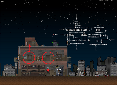 2층 좌측에 1명, 3층 우측에 1명의 동료가 있으며 자동 총쏘기로 디펜스를 돕습니다.