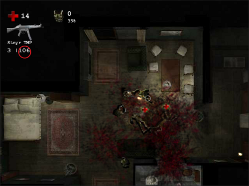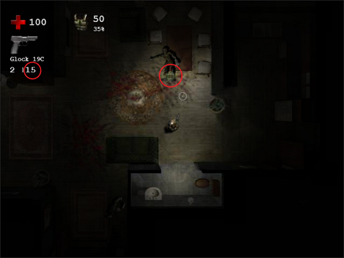 좀비를 처치하면 탄약, 체력 회복 아이템, 무기가 드랍됩니다