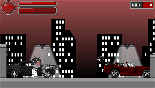 화면 양쪽에서 몰려오는 적을 마우스로 조준해 사격하며 최대한 오래 생존합니다.