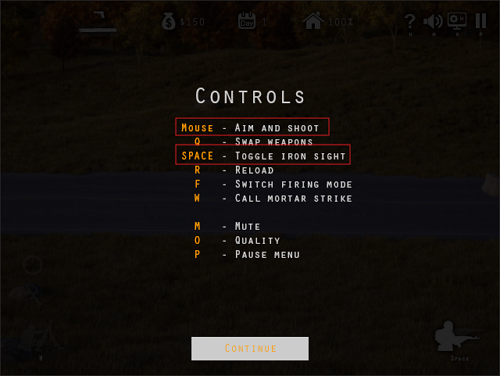 스페이스바를 누르면 실제 총의 조준간을 통해 적을 맞춰야 합니다.