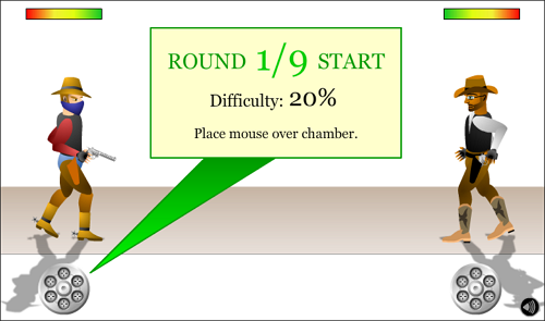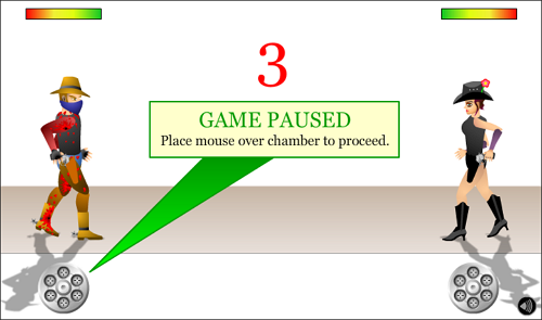 카운트다운이 끝나는 순간 상대보다 먼저 총을 쏴야 살아남는 빠른 반사신경이 필요한 게임입니다.