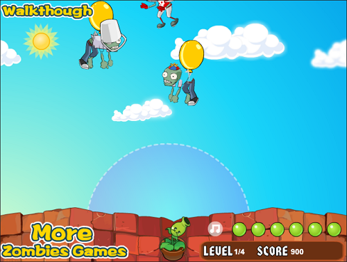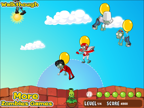 풍선을 타고 있는 좀비가 하나라도 땅에 내려오면 바로 게임오바가 됩니다.