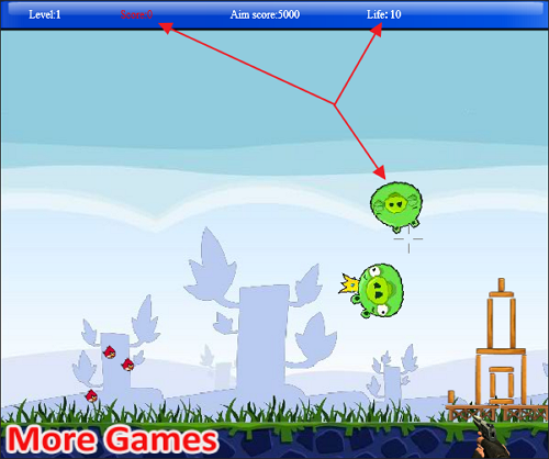 화면 곳곳에 등장하는 녹색 돼지들을 마우스로 클릭해 격추시키고 목표 점수를 달성해야 한다.