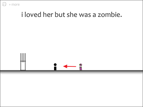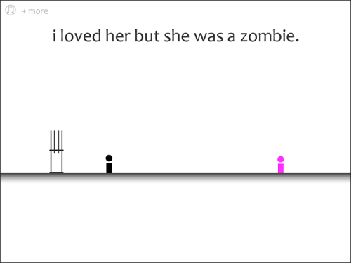 ‘i saw her standing there’는 좀비가 되어버린 여자친구를 주인공이 끝까지 사랑한다는 컨셉의 미니멀 플래시 퍼즐 플랫폼 게임입니다.