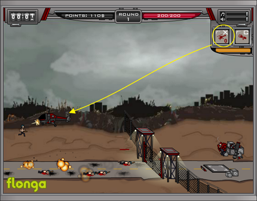 스킬은 X, C를 이용해서 사용하며 헬기공격은 적을 한번에 쓸어버리는 효과가 있습니다.