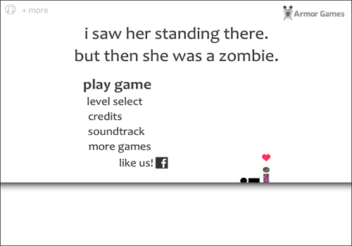 ‘i saw her standing there’는 좀비가 되어버린 여자친구를 주인공이 끝까지 사랑한다는 컨셉의 미니멀 플래시 퍼즐 플랫폼 게임입니다.