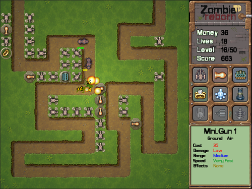 시작하면 Money(돈) 로 타워를 설치/업그레이드하고 좀비를 잡아 돈을 벌어 다음 웨이브를 대비합니다.