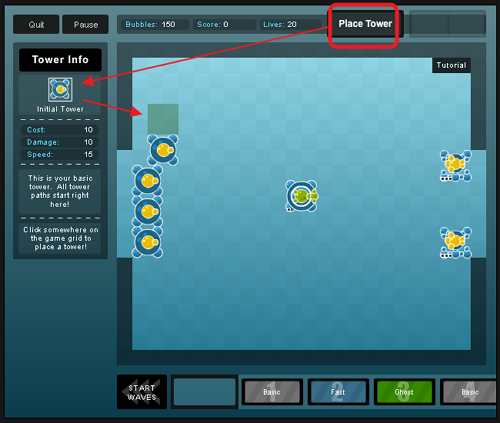 버블탱크 타워디펜스는 일반적인 디펜스게임과 거의 동일한 방식으로 타워를 건설하여 적의 침입을 막아내는 게임입니다.