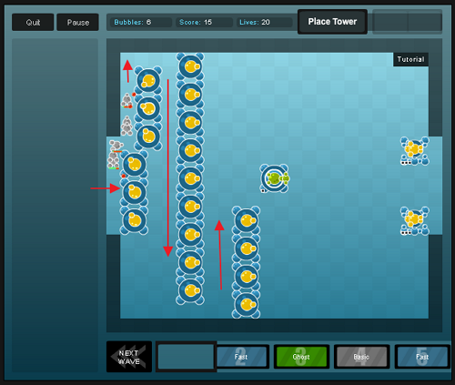 • 적을 잡으면 얻는 자원(버블)로 타워 추가/업그레이드