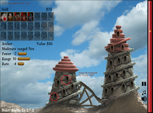 게임의 목표는 타워 창문에 유닛을 배치하여 밀려오는 적을 막는 것입니다.