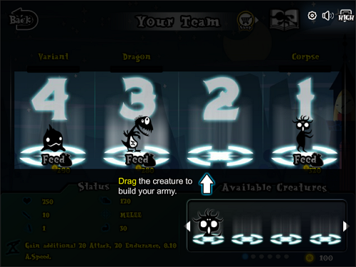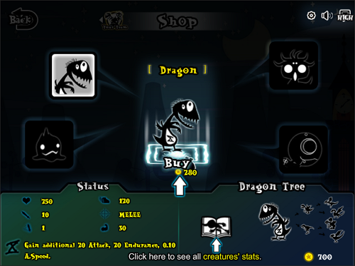 • 전투 전에 상점과 드래곤 트리에서 몬스터를 구입하고 편성한다.