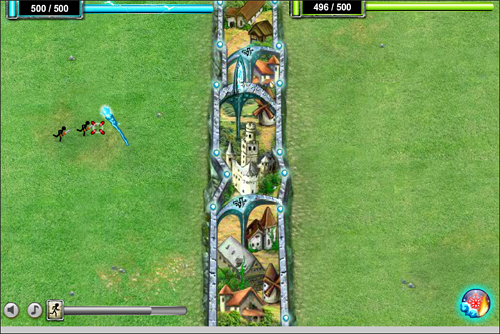 중앙의 거대한 탑을 중심으로 좌우에서 몰려오는 적들을 마법과 클릭으로 처치해야 합니다.