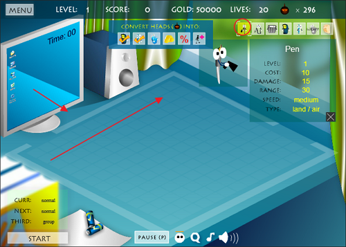 FreeWorldGroup이 2007년 제작한 Revenge of the Stick은 데스크탑 위의 소품들을 타워로 삼아 스틱맨 무리의 탈출을 막는 전략 타워 디펜스 게임입니다.