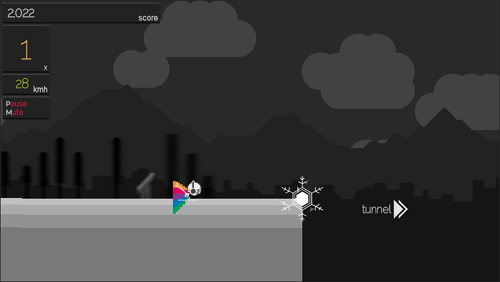 솔립스키어는 스키어를 조종하는 것이 아닌 지형 자체를 그려주는 완전히 새로운 발상으로 출시 당시 큰 주목을 받은 작품입니다. 단조로운 회색 배경 위에 무지개색 스카프를 휘날리는 스키어의 대비가 인상적인 미니멀한 그래픽과 속도감 넘치는 플레이가 조화를 이룹니다. 조작은 단순하지만 길의 경사와 점프 타이밍, 게이트 통과 전략이 맞물리며 깊이 있는 플레이를 만들어내는 게임입니다.