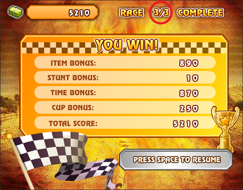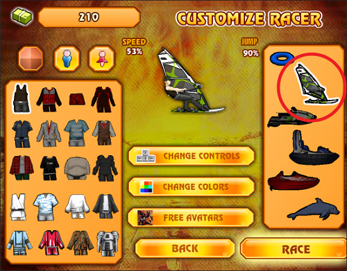 3번의 레이싱을 마치면 다음 스테이지로 넘어갈수 있고 이때 옷이나 탈것을 교체할수 있습니다.
