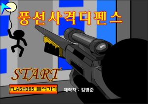 풍선사격디펜스는 풍선을 타고 올라오는 괴한들을 대상으로 풍선을 터트려 디펜스를 하는 게임입니다. 한명 놓칠때마다 옥상에 한명씩 늘어나며 10명을 놓치면 게임오버입니다. 흰색 풍선은 한방만 맞추면 되고 빨간색은 2방 맞춰야 합니다. 창밖에 얼굴을 내민 사람은 맞추면 안됩니다.